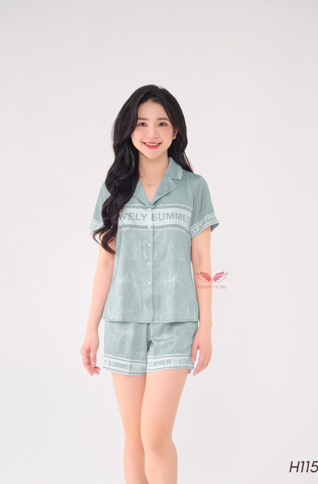 - Tên sản phẩm: Bộ đồ mặc ở nhà lụa nữ họa tiết tay cộc quần đùi thoáng mát H1182