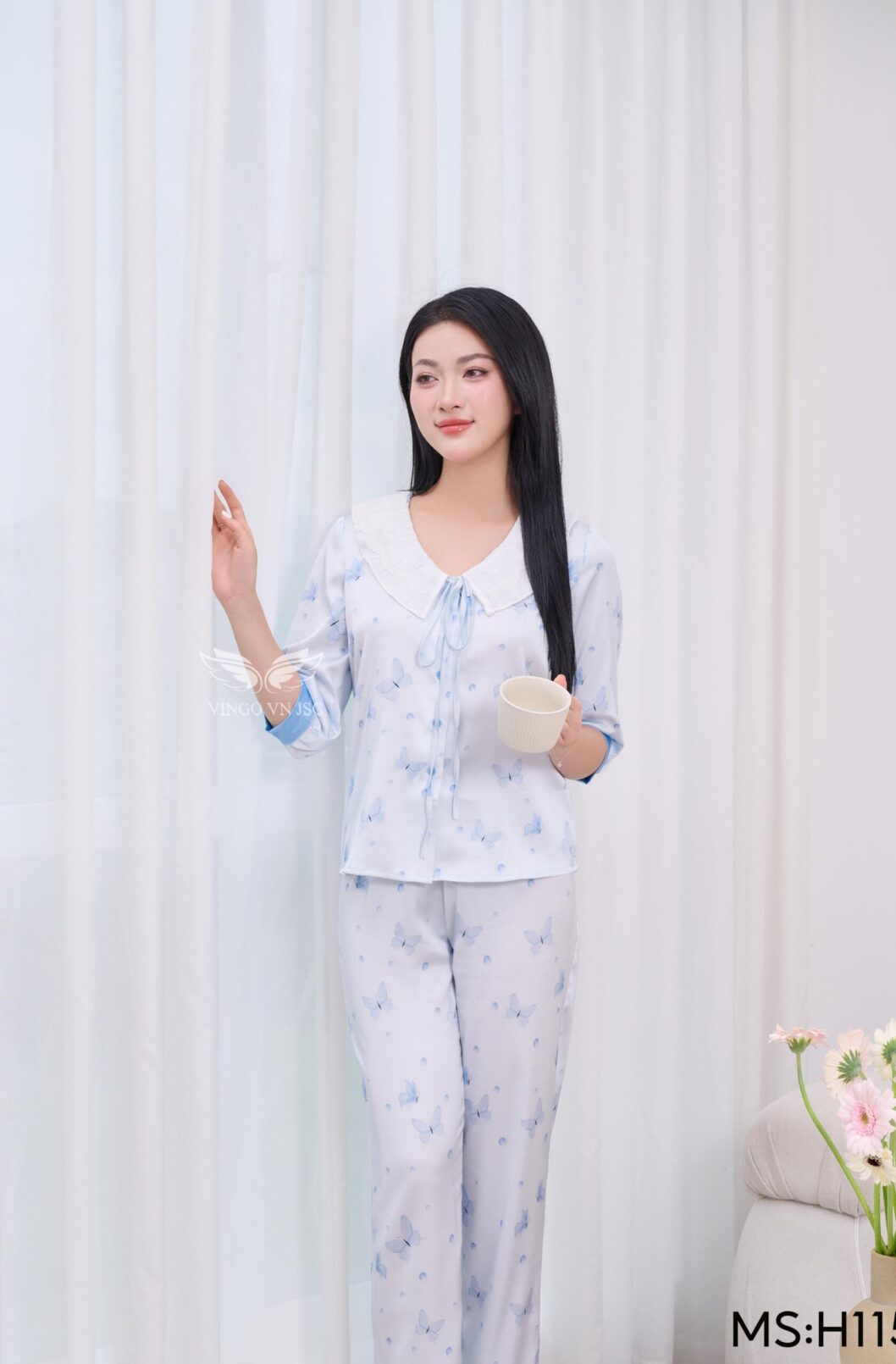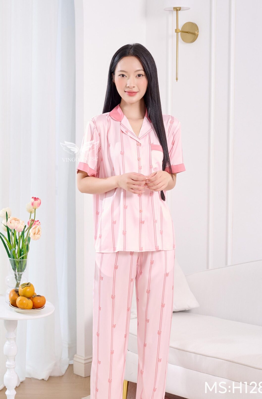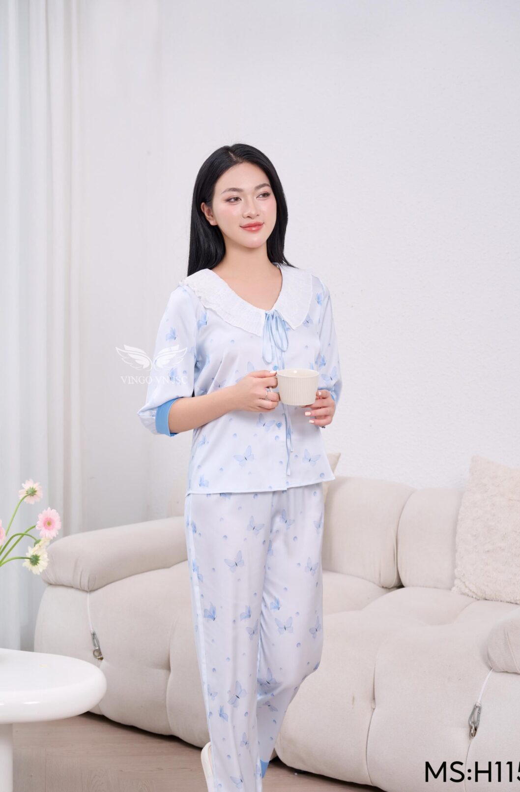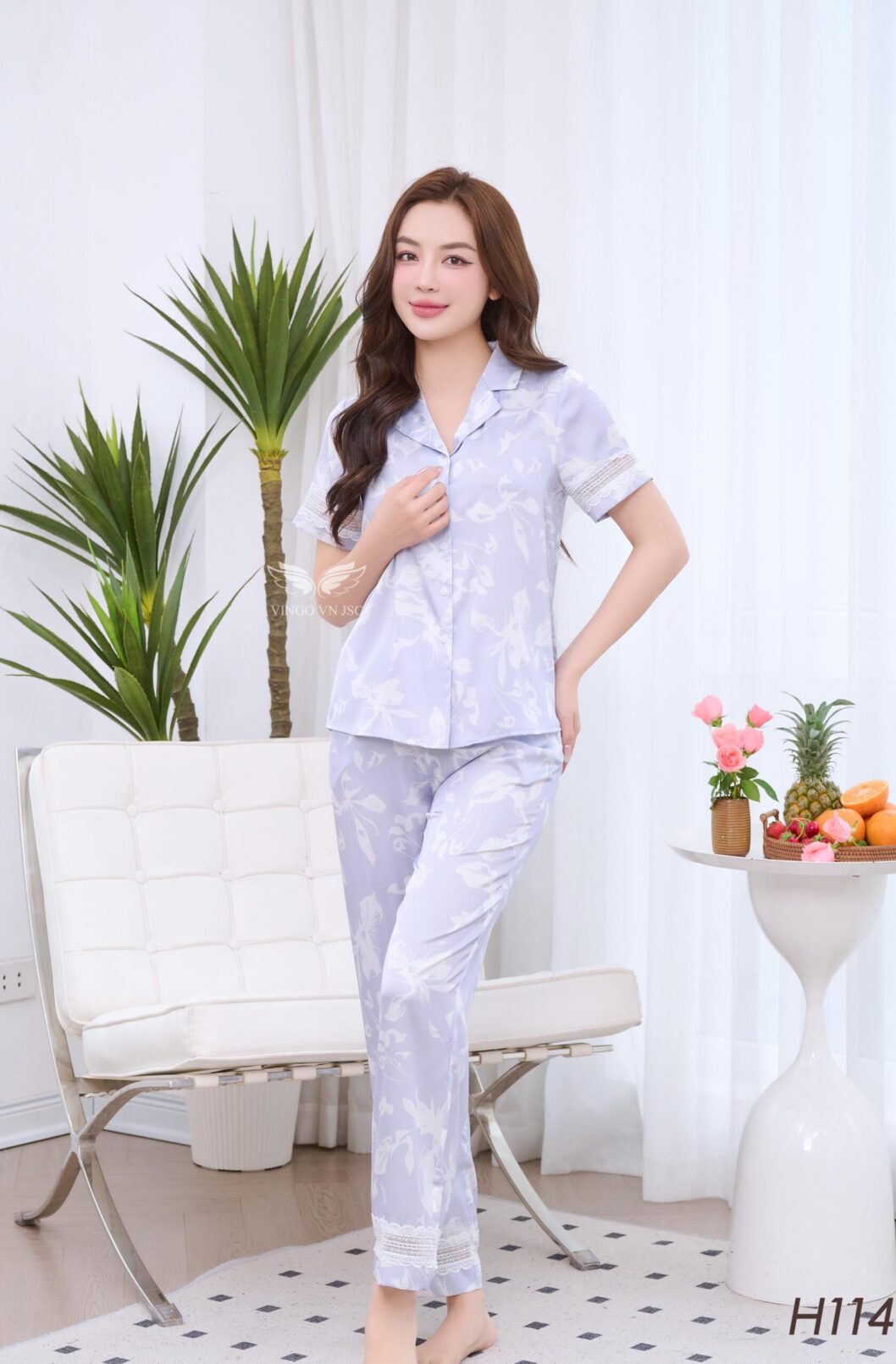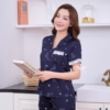 - Chất liệu lụa pháp cao cấp, tạo cảm giác mát lạnh, dễ chịu khi mặc nhà