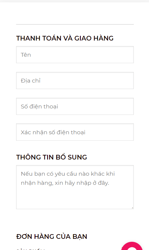 Sau khi điền đủ thông tin, kéo xuống dưới bạn sẽ thấy giao diện để bạn hoàn tất đơn hàng