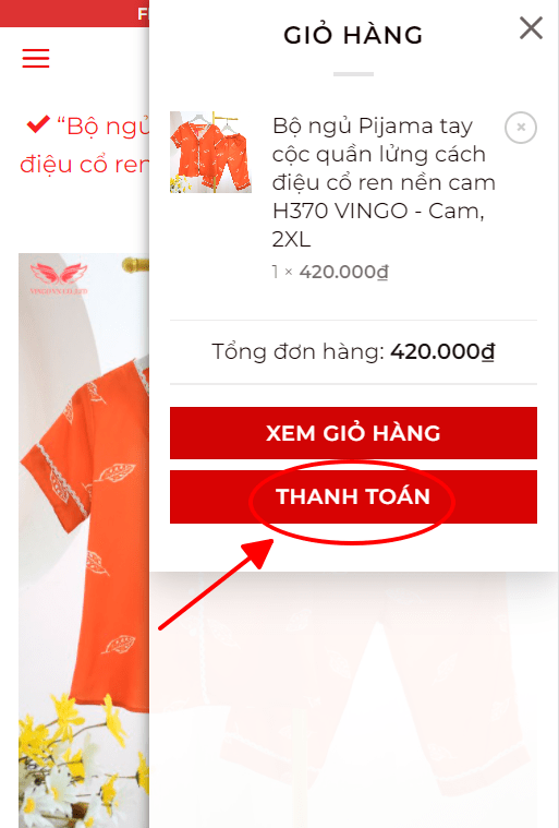 Sau khi thêm vào giỏ hàng, góc phải màn hình sẽ hiển thị những món bạn đã thêm vào giỏ hàng, ấn THANH TOÁN sau đó bạn sẽ được chuyển đến mục THANH TOÁN VÀ GIAO HÀNG, điền đầy đủ thông tin và ấn vào ĐẶT HÀNG để hoàn tất.