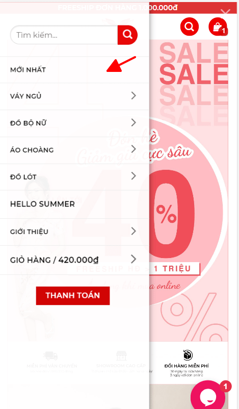 Lựa chọn các ngành hàng bạn muốn mua, vd: váy ngủ, đồ ngủ, áo choàng…