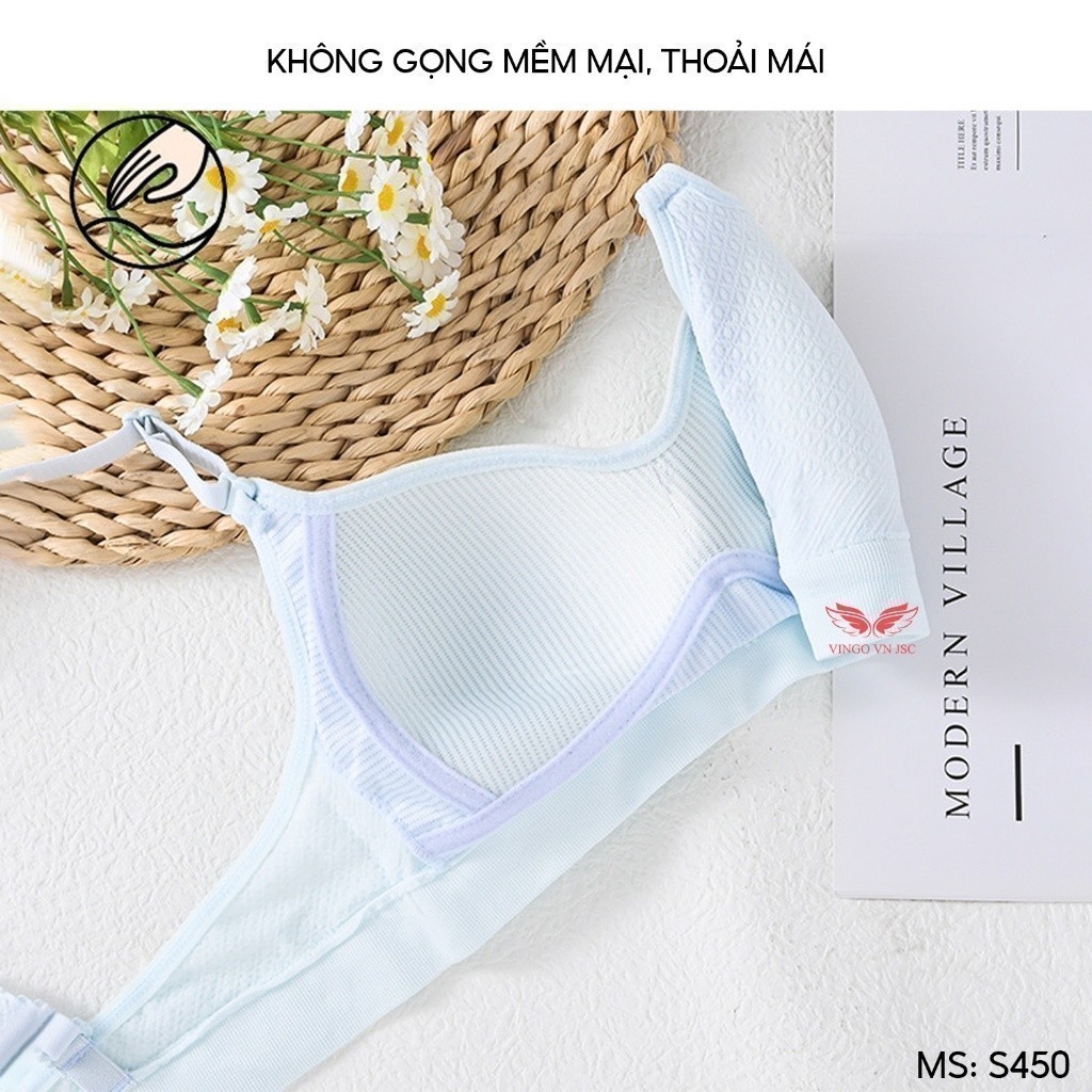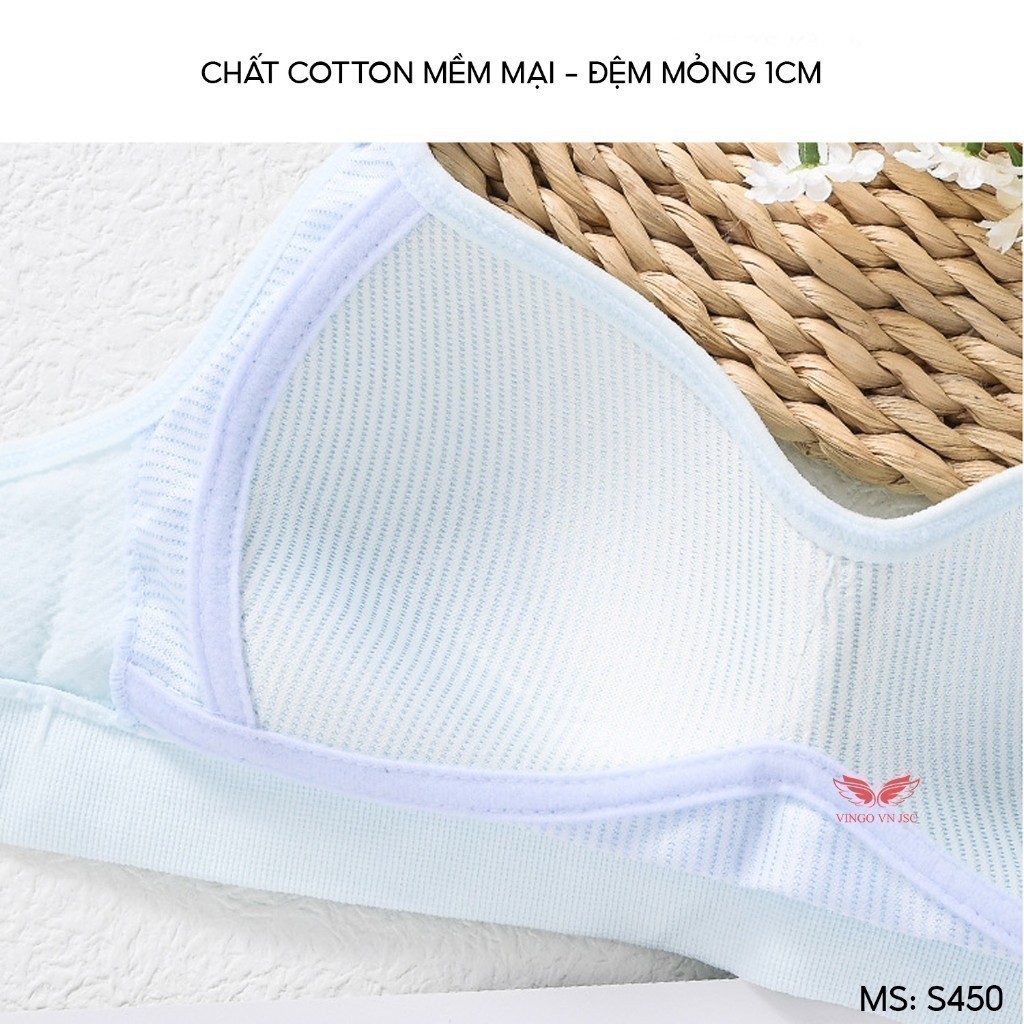 Áo lót cotton mềm – sọc kẻ – quả chéo đệm mỏng không gọng S450