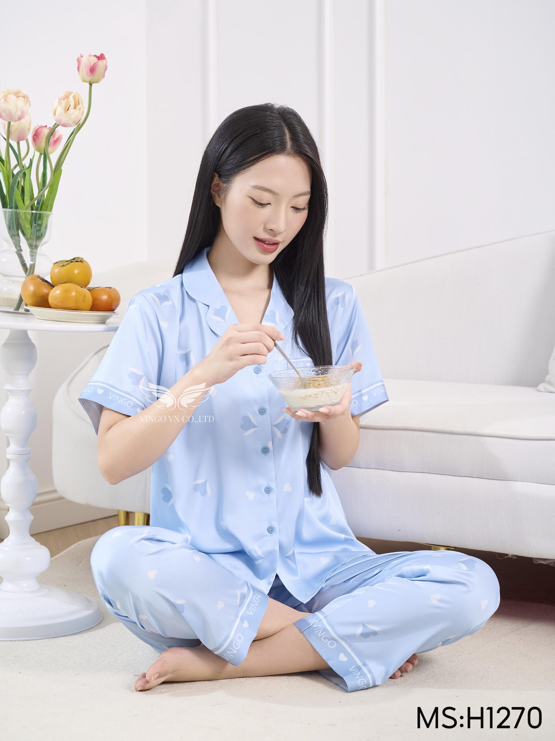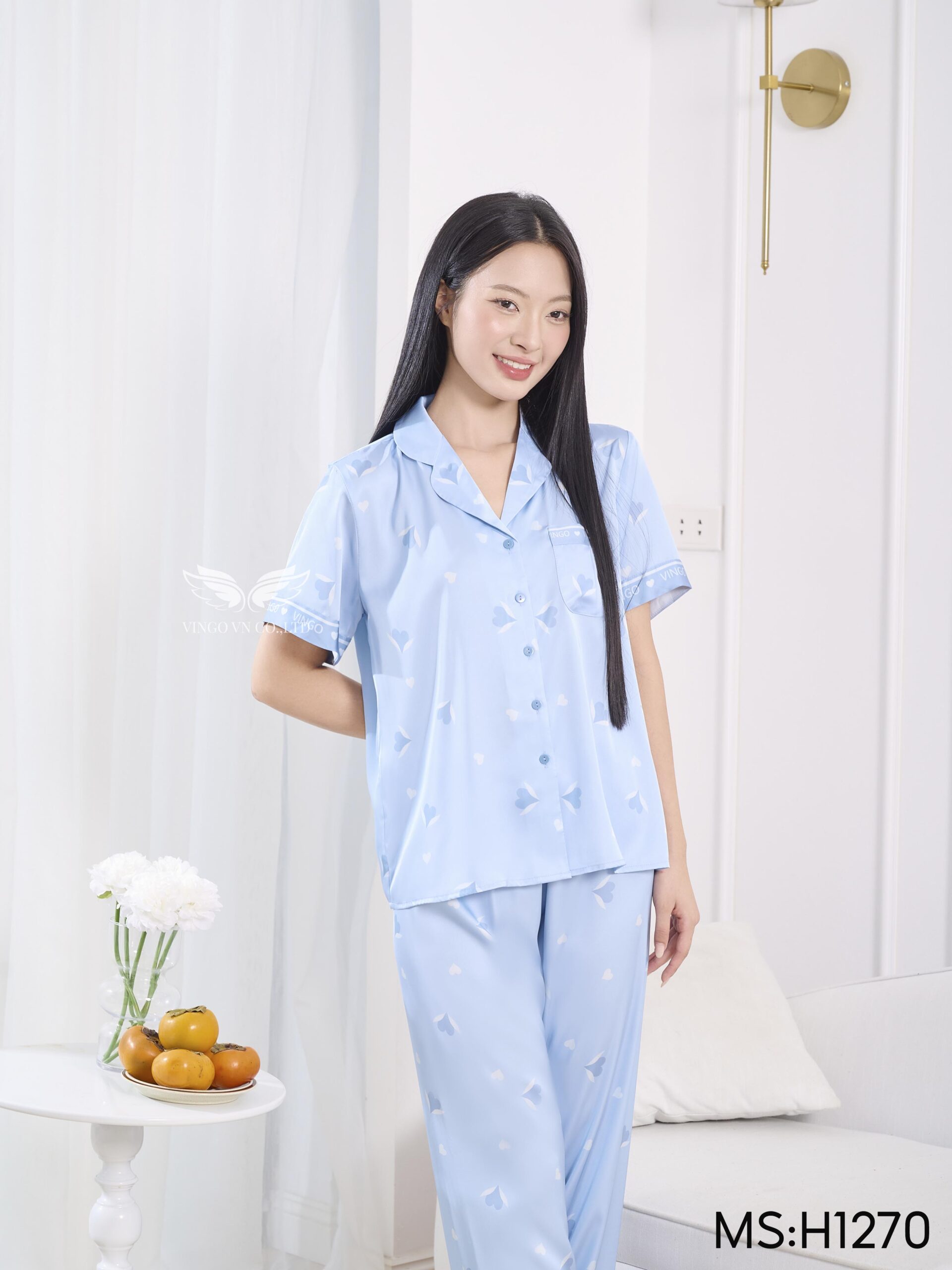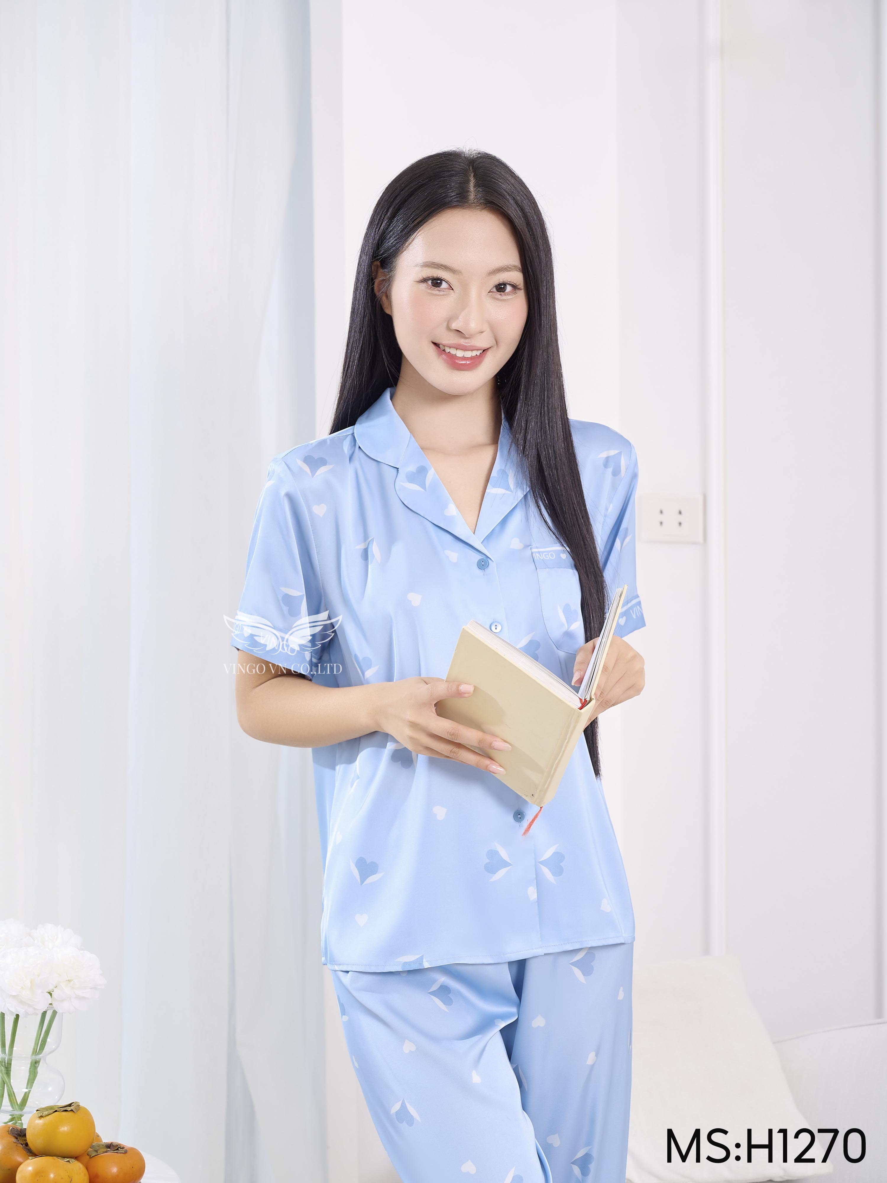 – Set pijama lụa H1270 từ Vingo có thiết kế tay dài dáng có chiết eo nhẹ giúp vóc dáng thon gọn hơn.