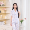 Bộ đồ mặc nhà pijama lụa cao cấp hoa hồng xanh H1217