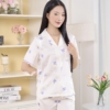 • Tên sản phẩm: Bộ đồ mặc nhà pijama lụa mềm mịn phối ren họa tiết hoa iris trắng H1258