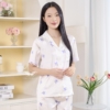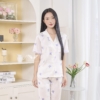Bộ đồ mặc nhà pijama lụa mềm mịn phối ren họa tiết hoa iris trắng H1258
