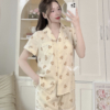 Bộ đồ mặc nhà tơ đũi tay cộc quần đùi họa tiết gấu nhỏ đáng yêu H1338