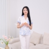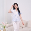 Bộ đồ mặc ở nhà lụa cao cấp hoa thủy tiên màu trắng sang chảnh H1234