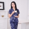 - Tên sản phẩm: Bộ đồ mặc ở nhà lụa cao cấp tay cộc quần dài màu xanh than họa tiết H1223