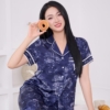 Bộ đồ mặc ở nhà lụa cao cấp tay cộc quần dài màu xanh than họa tiết H1223
