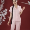 Bộ đồ ngủ pijama lụa nữ tay cộc quần dài phối bèo Niên Hoa H1328