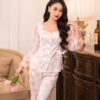 Bộ đồ ngủ pijama lụa tay dài quần dài phối voan H1069
