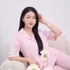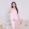 Bộ ngủ lụa mặc ở nhà tay cộc quần dài màu hồng sang chảnh H1252