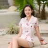 - Tên sản phẩm: Bộ ngủ lụa nữ cao cấp mặc nhà tay ngắn quần cộc LITTLE CHERRY H1390 – BST Ánh Dương