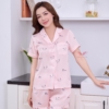 - Tên sản phẩm: Bộ pijama lụa mặc ở nhà họa tiết màu hồng trẻ trung tay ngắn quần đùi H1176
