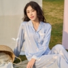 Bộ pijama lụa nữ mặc ở nhà tay dài quần dài họa tiết gấu dễ thương H1287