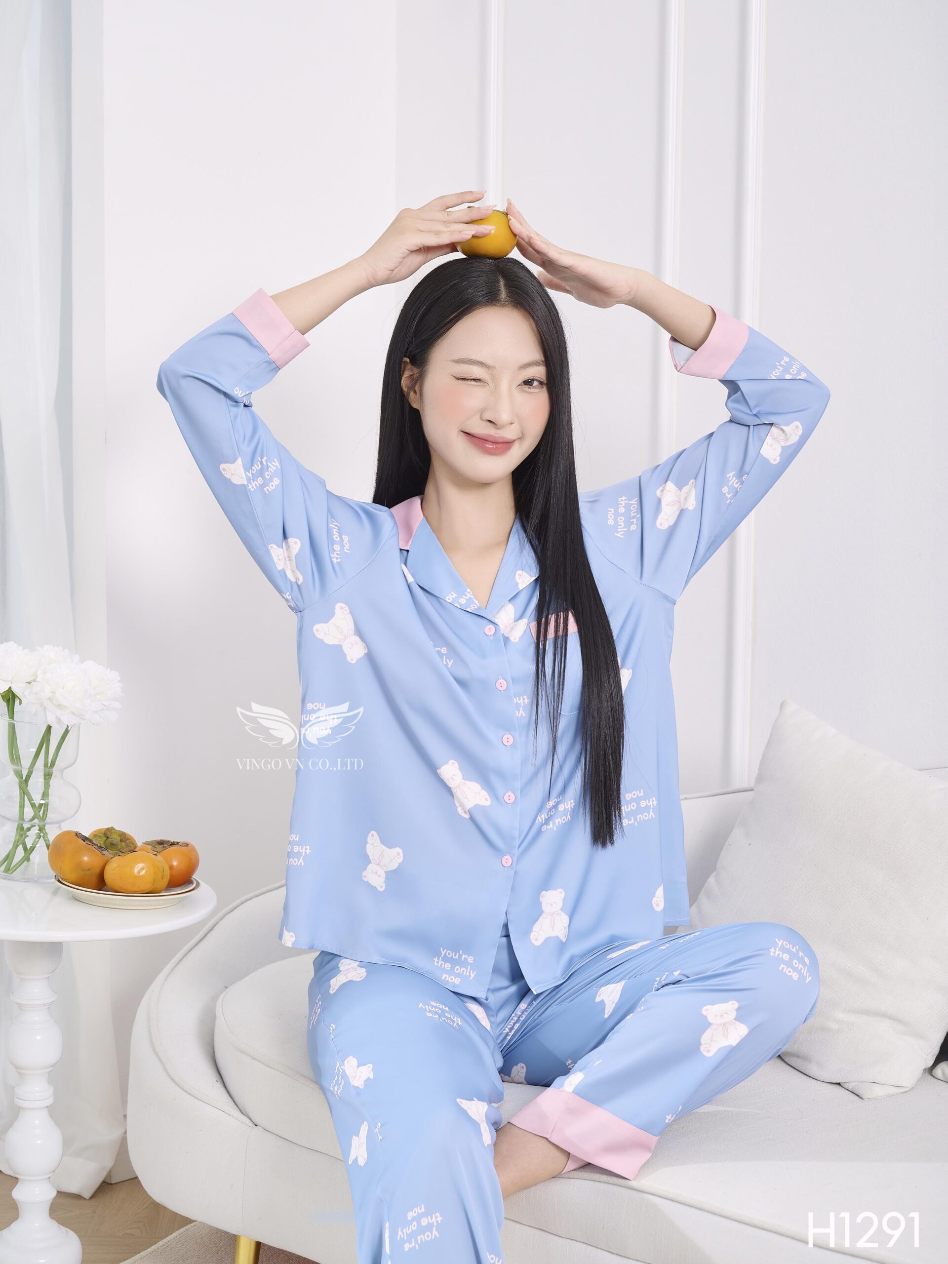 – Set pijama lụa H1291 từ Vingo có thiết kế tay dài dáng có chiết eo nhẹ giúp vóc dáng thon gọn hơn.