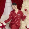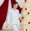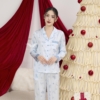 • Tên sản phẩm: Bộ pijama lụa nữ tay dài quần dài mặc mùa thu đông họa tiết bông tuyết H1314