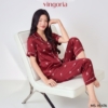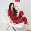 Bộ Pijama lụa tay cộc quần dài họa tiết gấu nhỏ H1476