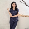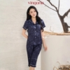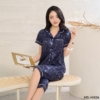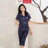 Bộ Pijama lụa tay cộc quần lửng lụa họa tiết hoa lá H1436