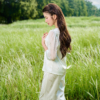 – Áo có dáng suông ngắn, phần ngực kết hợp bèo nhún tạo độ mềm mại, đi kèm chi tiết nơ nhỏ giữa ngực tăng thêm vẻ dễ thương