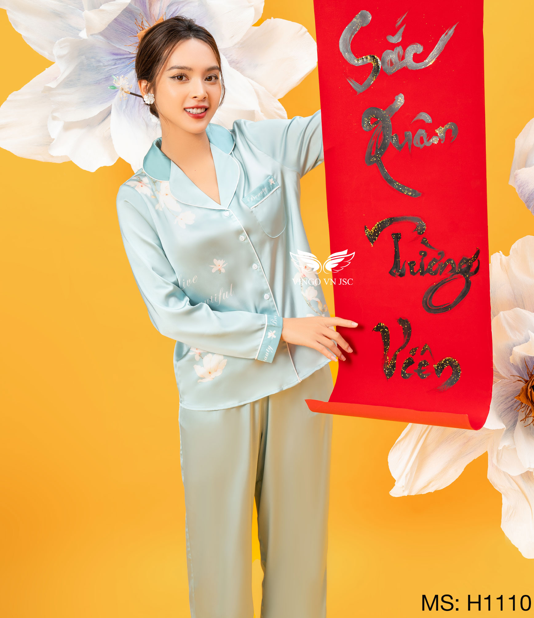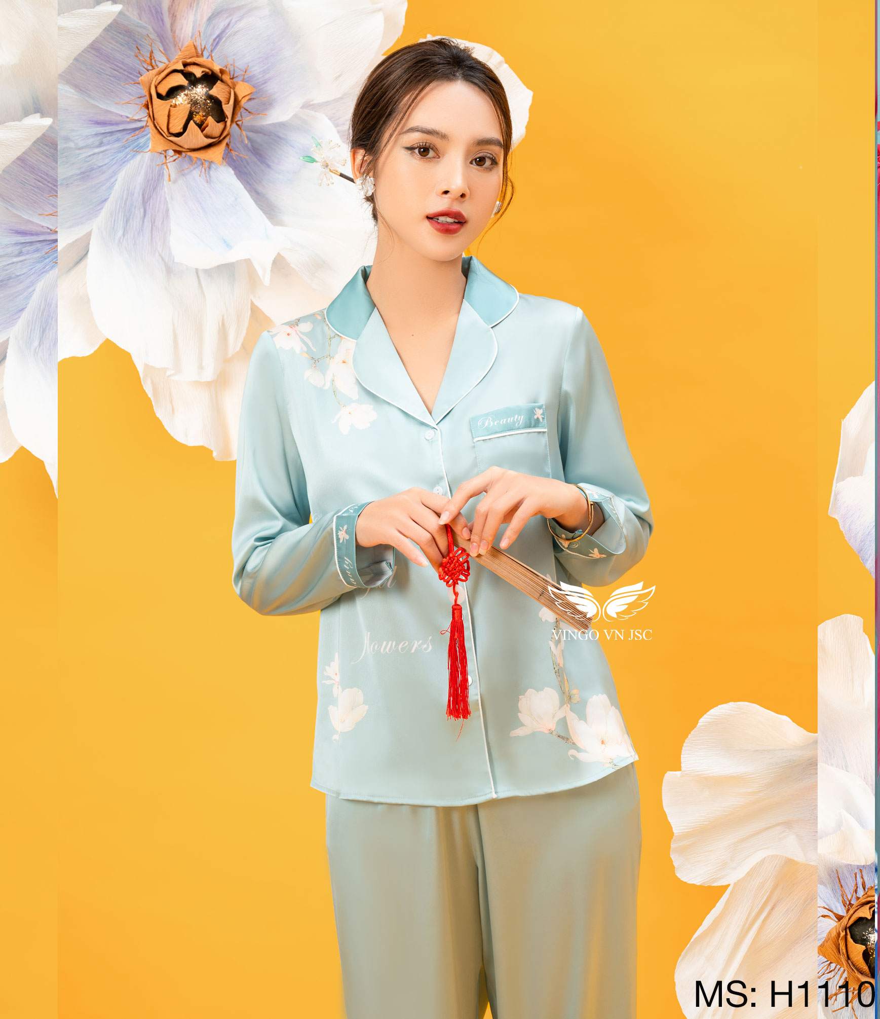 - Chất liệu lụa cao cấp, tạo cảm giác mát lạnh, dễ chịu khi mặc nhà