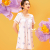 – Váy tay cộc phối ren cho từng cái nhấc tay nhẹ nhàng, thanh thoát.