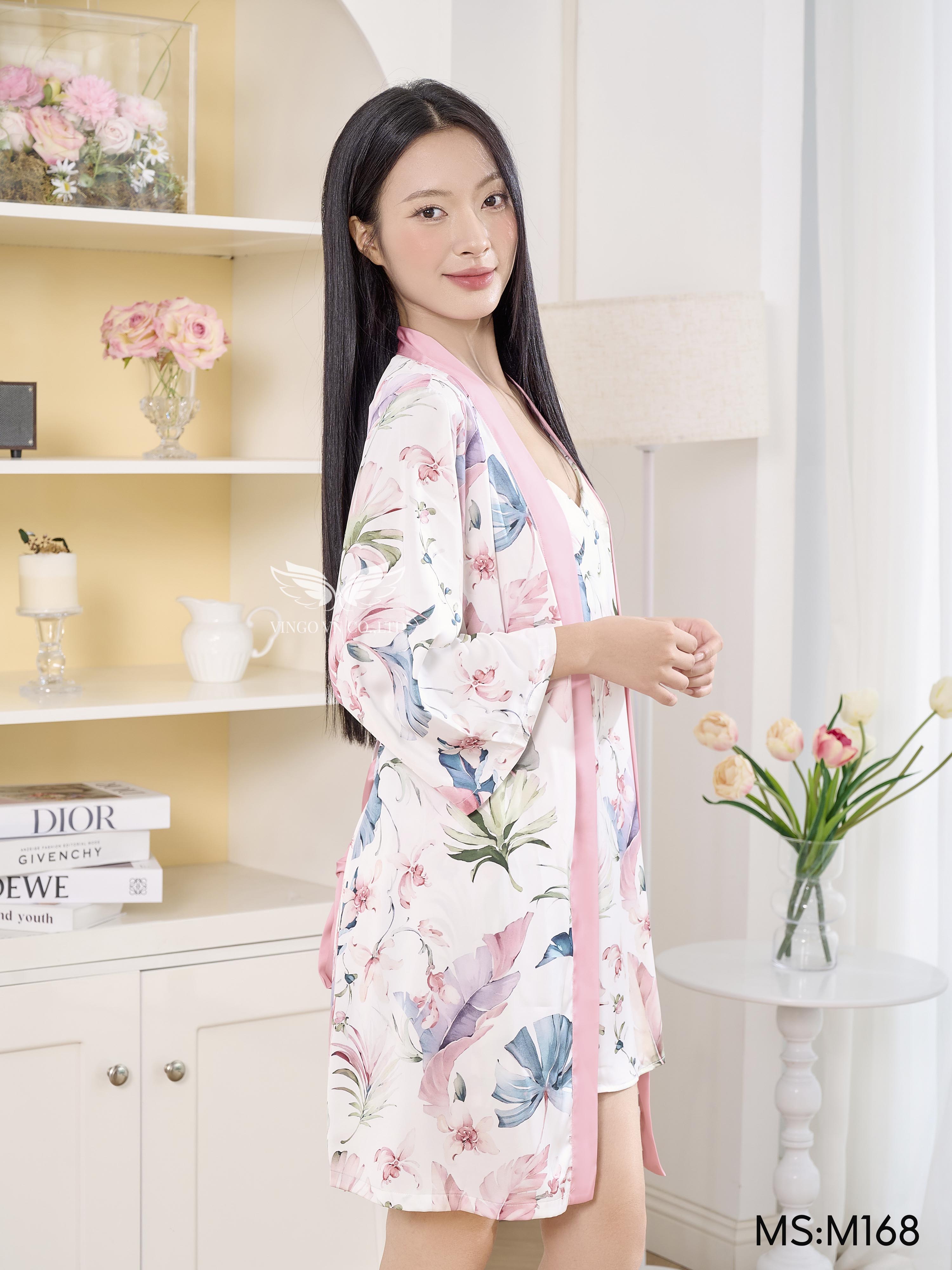Váy ngủ kèm áo choàng lụa cao cấp họa tiết hoa phối sexy M168