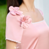 – Đặc biệt, chi tiết hai bông hoa mẫu đơn lớn đính lệch một bên vai làm tăng thêm nét dễ thương và mềm mại cho tổng thể