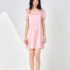 – Tay áo ngắn, viền ren đồng bộ với cổ tạo sự liền mạch trong thiết kế