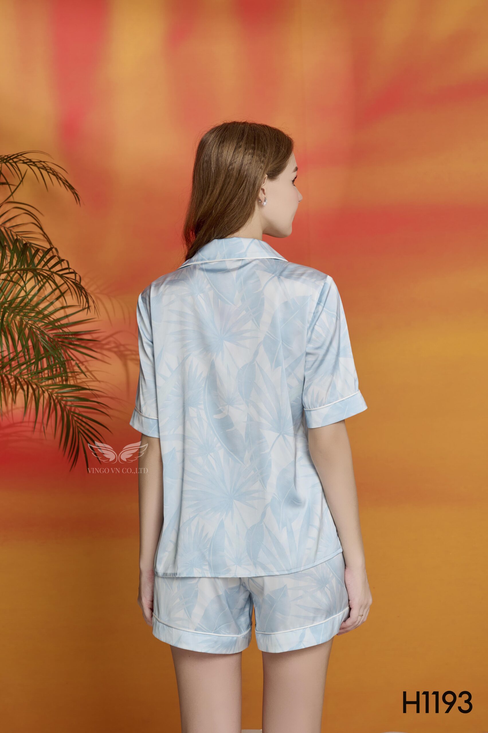 Bộ mặc ở nhà lụa nữ Pijama tay cộc quần cộc Tropical Leaf H1193